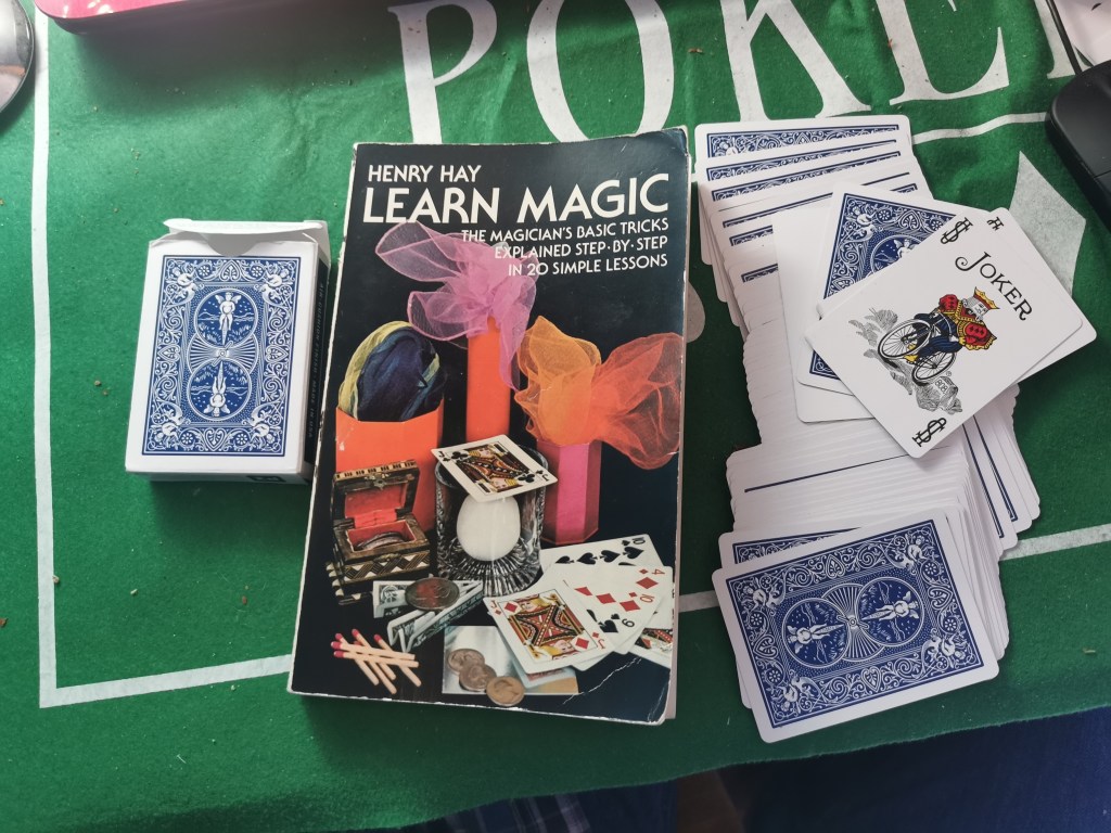 A classic beginners book and a deck of cards
