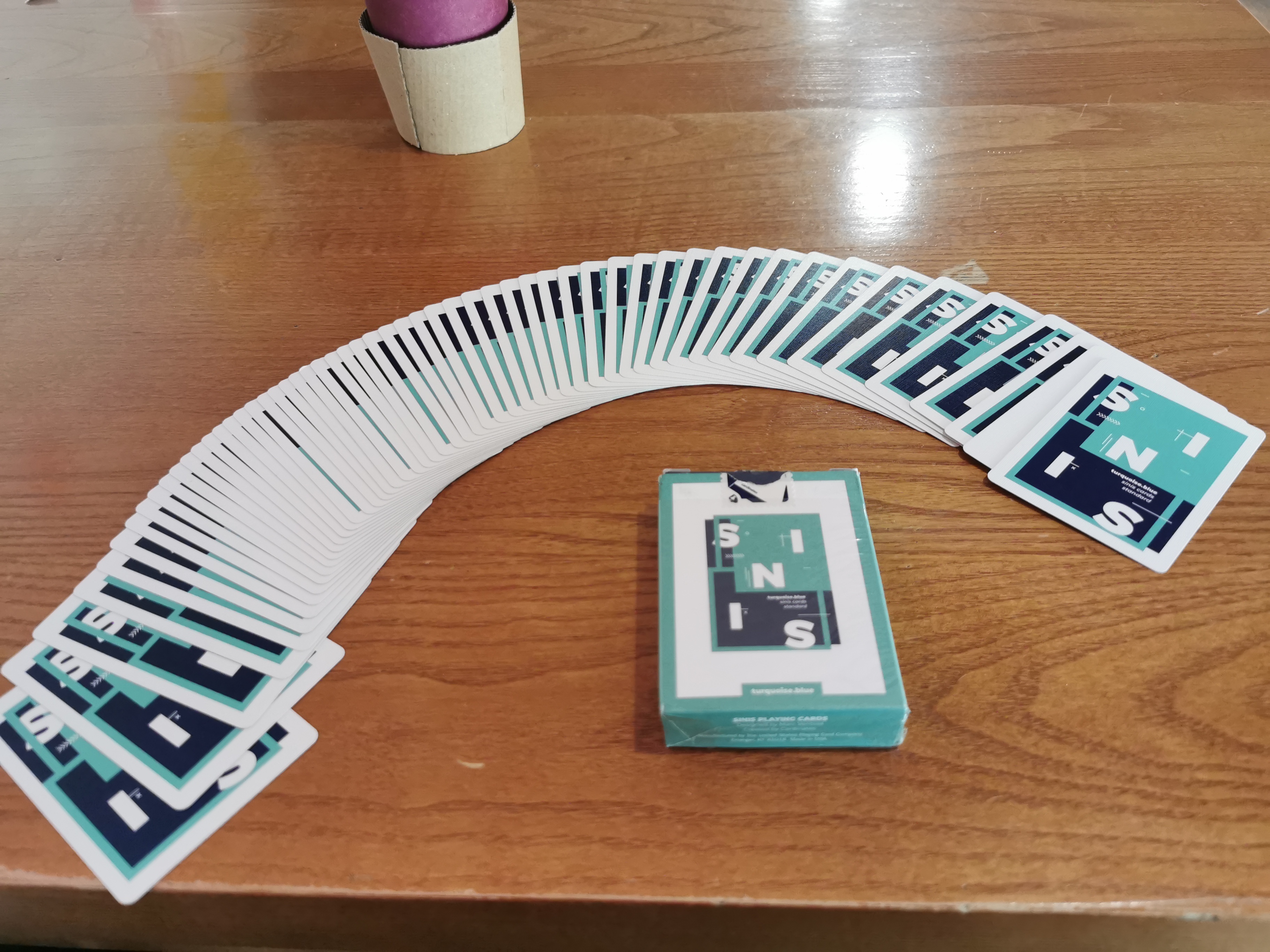 The design is fabulous. I like the letterboxing of the courts and the aces are lovely. Spot cards are as spot cards do but they are blue and turquoise.